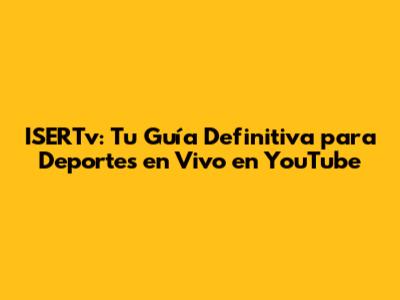¿Eres un apasionado de los deportes que busca ISERTv deportes en vivo YouTube? ¡Pues has llegado al lugar correcto, amigos! En este artículo, te guiaremos a través del emocionante mundo de ISERTv y cómo puedes disfrutar de tus eventos deportivos favoritos en vivo a través de YouTube. Prepárense para sumergirse en la acción, descubrir consejos útiles y explorar todo lo que necesitas saber para no perderte ni un solo momento de la competencia. ¡Vamos a ello!